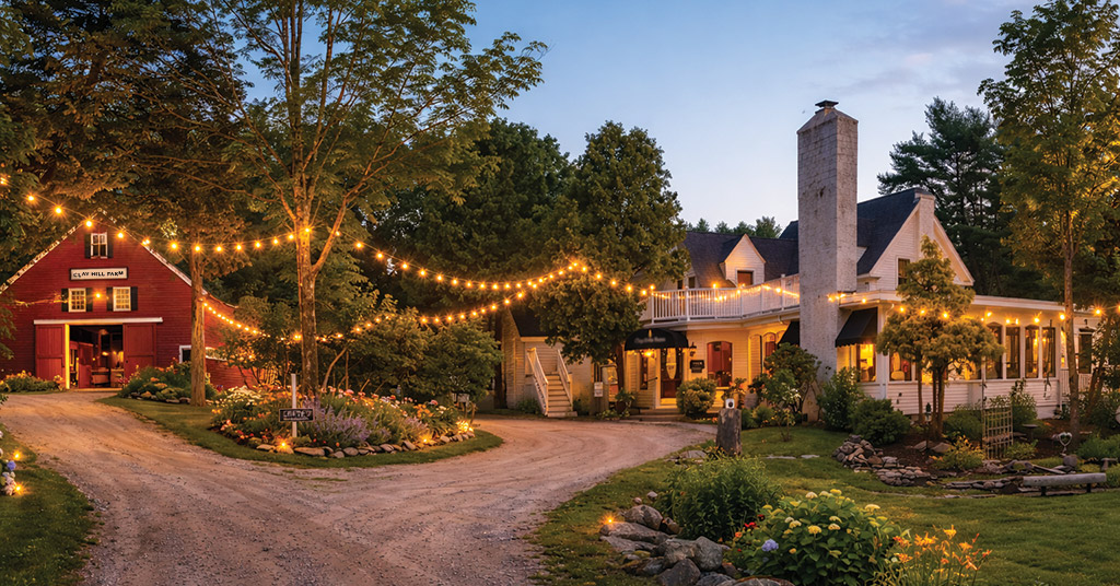 We’re seated in the Veranda Room at Clay Hill Farm, near the 1780 heart of the original farmhouse—a space that somehow evokes the cozy Technicolor glow of Holiday Inn. There’s a built-in hardwood dance floor, the light is golden, the paneling is warm and quietly elegant. Through a vast picture window, a bird sanctuary drifts by like we’re in a movie, but it’s real.